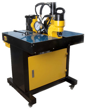 1、通用型母線加工機:不一樣薄厚的母線鈑金折彎,根據調節工作中液壓缸的感應開關操縱行程安排間距,工作中表針相匹配不一樣的標尺刻度,就能進行相對的鈑金折彎視角。